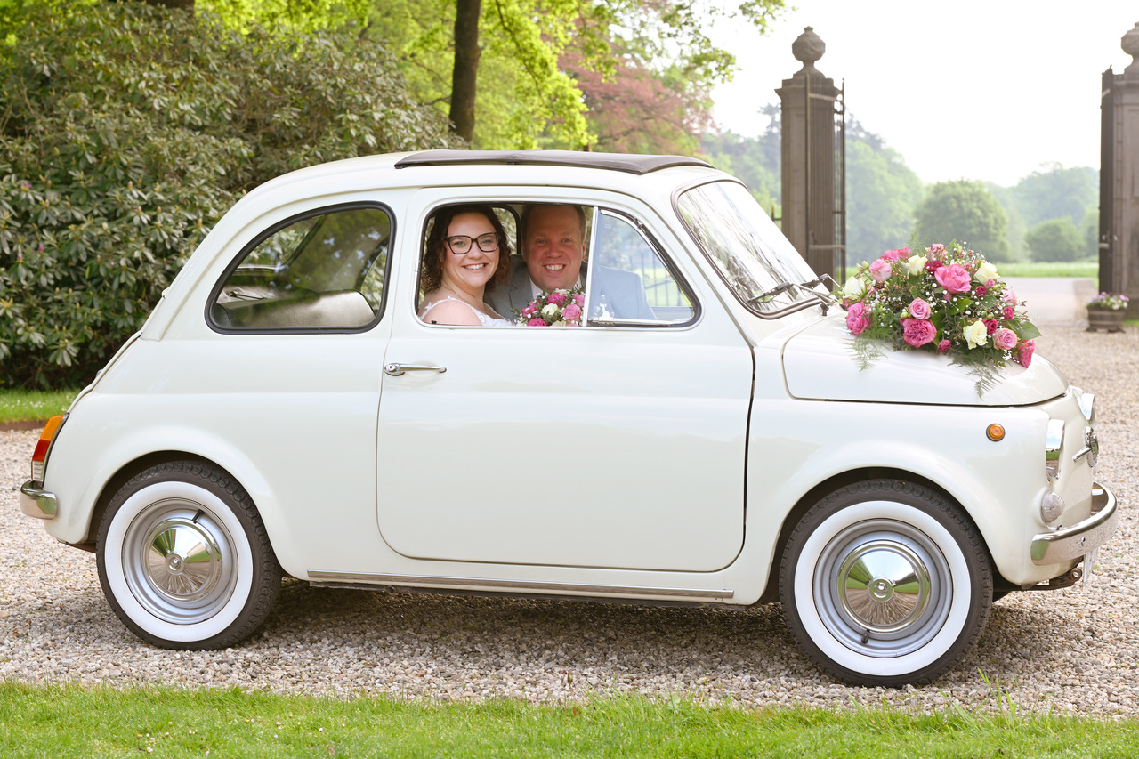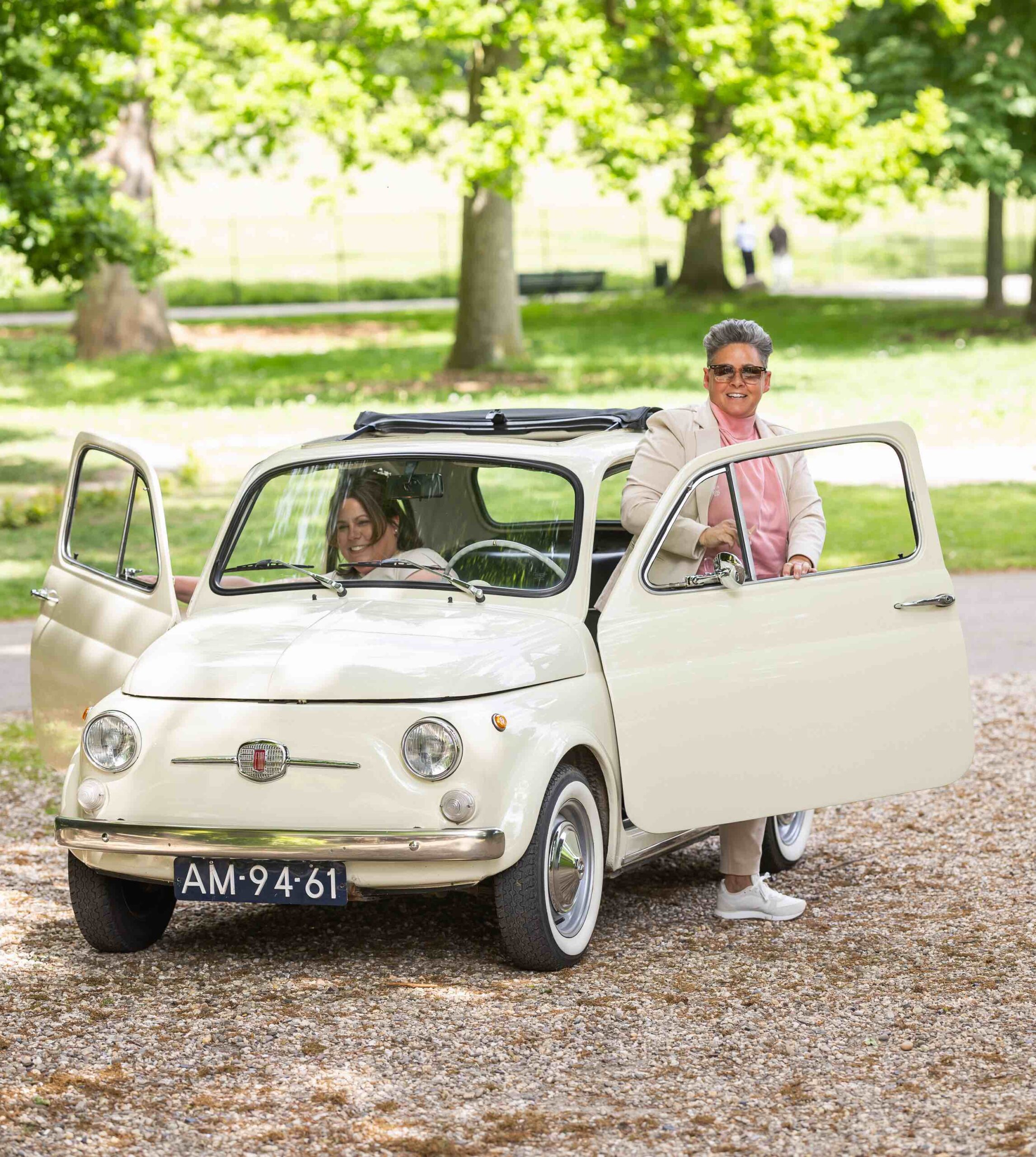 Heel leuk dat jullie gaan trouwen en op zoek zijn naar trouwvervoer. De zoektocht hoeft misschien niet lang te duren, want zijn jullie ook op slag verliefd op deze schattige oldtimer Fiat 500? De Bruiloftauto is uit 1972 en heeft een open dakje, bijpassende white-wallbandjes en zwarte bekleding. Ook al verwacht je het niet bij deze kleine knusse auto, ook mensen van 2 meter lang passen achter het stuur.