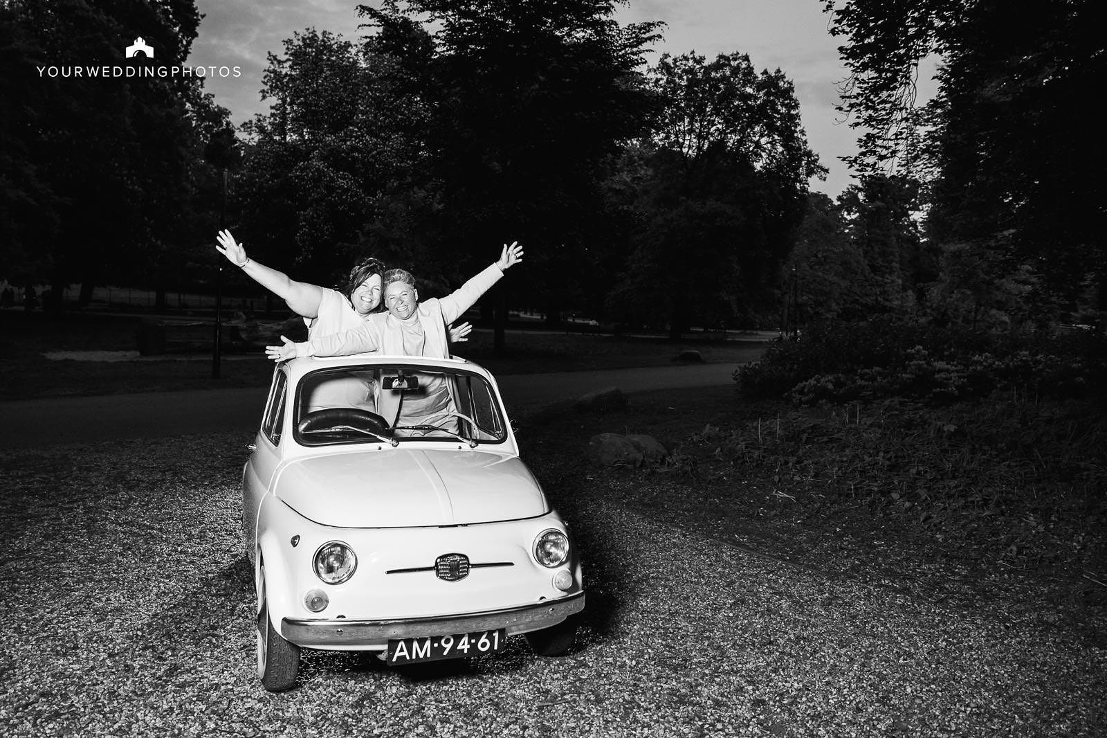 Ons trouwvervoer bestaat uit een trouwfiets en trouwauto, ofwel de Bruiloftfiets en Bruiloftauto. Deze twee oldtimers een riksja en een Fiat 500 vullen elkaar perfect aan, net zoals jullie dat doen!